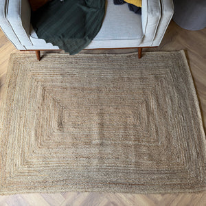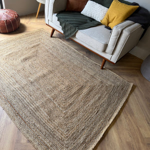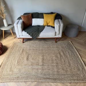 The Byron Natural Jute Rug is a timeless, handwoven piece crafted from 100% natural jute fibres. Featuring a structured concentric rectangle weave, this design adds subtle texture and depth while keeping a clean, minimal look.