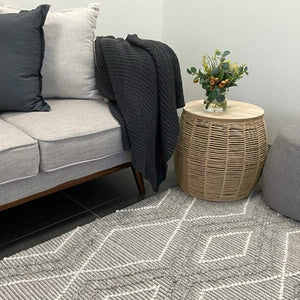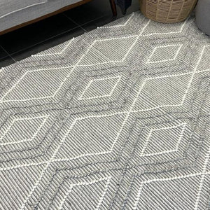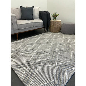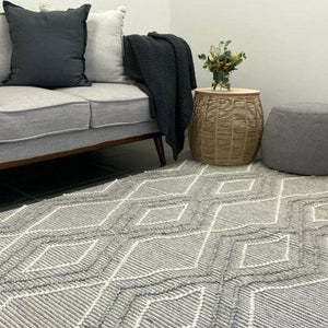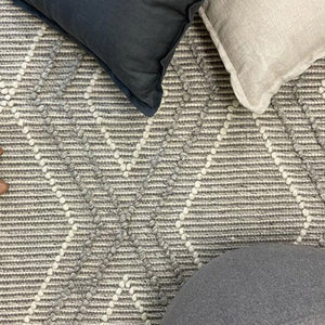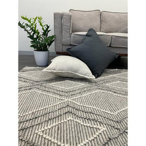 Anika Silver Grey Diamond Trellis Wool Rug